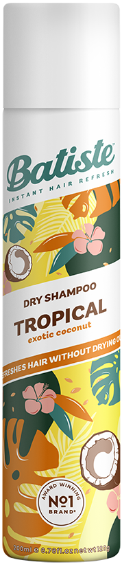 Το Batiste Tropical είναι η εξωτική σας θεραπεία! Το χαρούμενο και καλοκαιρινό του άρωμα σας προετοιμάζει να αντιμετωπίσετε τον κόσμο, ενώ ονειρεύεστε τις διακοπές. Με νότες αρωμάτων από καρύδα σε συνδυασμό με ανανά, άδραξε τη μέρα και λάμψε τη νύχτα. Ένα ψέκασμα από αυτό το μαγικό ξηρό σαμπουάν απομακρύνει αποτελεσματικά τη λιπαρότητα από τα μαλλιά σου, βοηθώντας τα να δείχνουν καθαρά χωρίς να τα ξηραίνει και έτσι εσύ να νιώθεις υπέροχα στην στιγμή. Δώσε στα μαλλιά σου νέο αέρα με έξτρα όγκο και υφή ανάμεσα στα λουσίματα, όποτε το χρειάζεσαι.